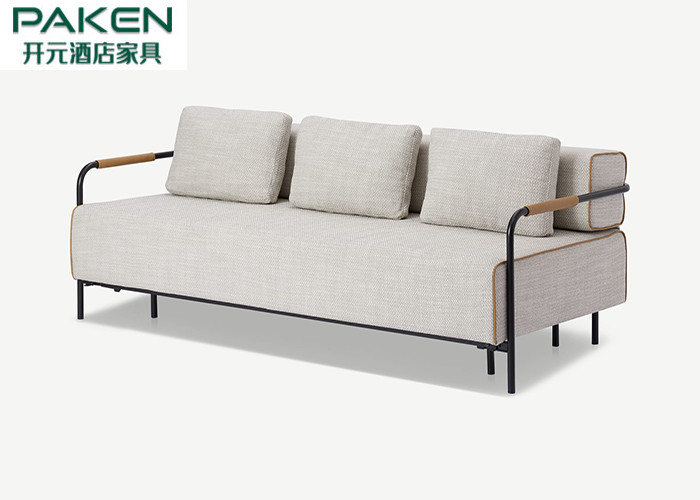3 Kursi Nestor Sofa Bed, Rasa Garis Rangka Besi, Pelapis Busa Kepadatan Tinggi Tempat Tidur Sofa Hotel Memperpanjang Ruang