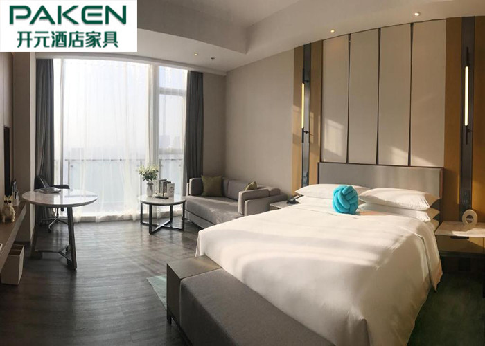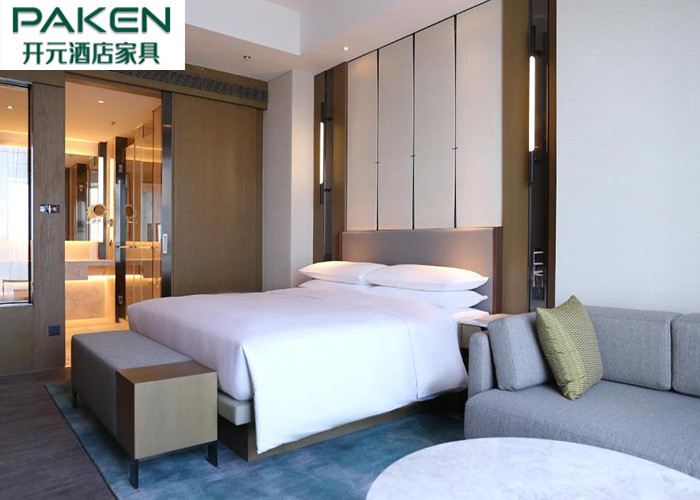 Marriott Hotel Group Design PU kulit Jok Kepala Tempat Tidur Gantung Di Dinding Panel TV Kayu